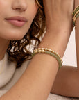 De Lime Jade Fuse Beads armband is een echte eyecatcher; door de prachtige 6mm cilindervormig gefacetteerde Lime Jade kralen valt deze armband extra op tussen jouw andere sieraden en daarom mag deze armband zeker niet ontbreken in jouw collectie. De zilveren en goudkleurige kralen zijn daarnaast prachtig getekend met organische vormen. Combineer hem met onze andere sieraden uit de Lime Jade Collectie of stel een mooie armbandenstack samen met onze andere kralenarmbanden!