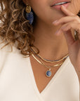 Deze Blue Aventurine Twist pendant met een vintage randje is perfect te matchen met de oorbellen en armbanden uit de Twist Collection.